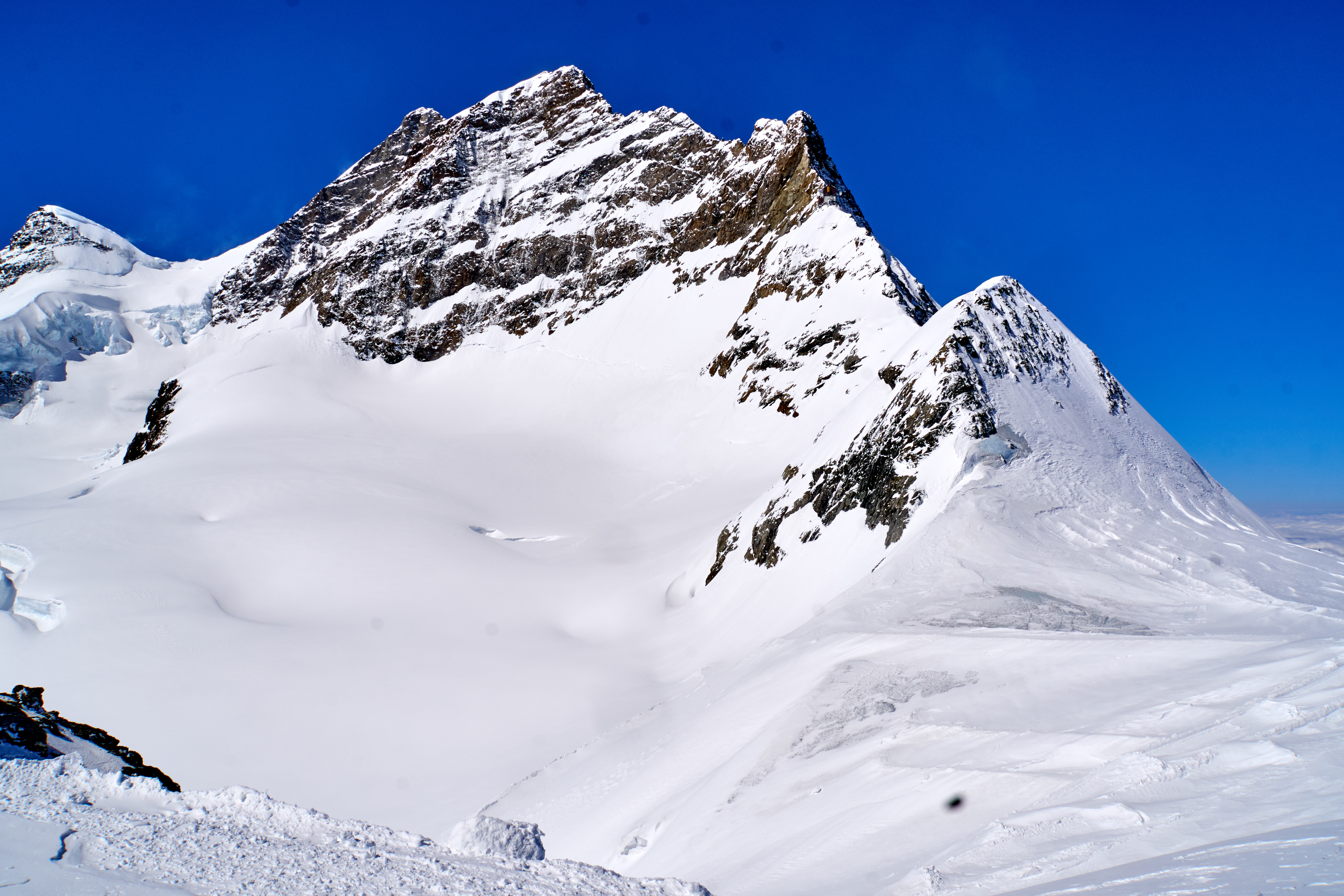 And here’s the Monch. “Monch” is German for “monk”, and “Jungfrau” means “young lady”. The next peak down the row is the “Eiger” which is “ogre” in English. The legend says that the Monch is protecting the Jungfrau from the Eiger.
